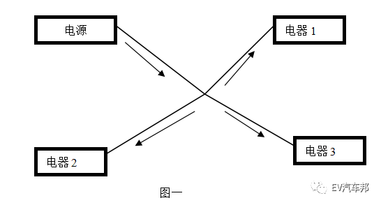 这样电路中就没有遵循此原则,线路中就存在绕路的情况。同时,我们知道电器元件的工作也会有一定的波动,那么在这样的线路中,在电器1、2、3中产生的波动就可能在主电路上产生叠加,这样就会影响电器件工作的稳定性和准确性。所以在电路和线束的设计中应该避免这种情况的发生。所以应该进行如下图的更改: